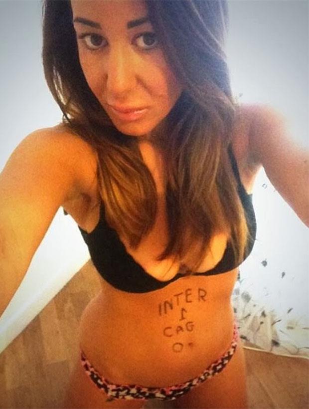 Seksepilna Emanuela je na svom stomaku napisala da će Inter da pobedi Kaljari s 1:0, dok u gradskom derbiju između Juventusa i Torina predviđa trijumf "stare dame" s 3:1