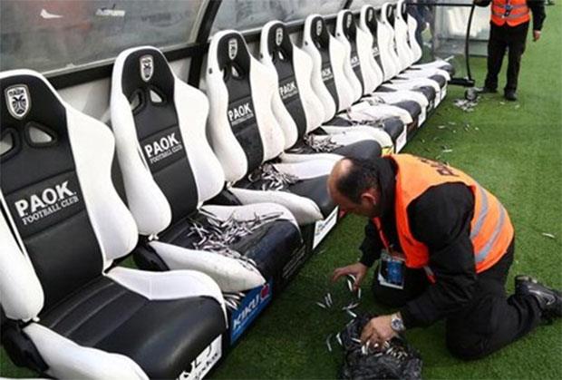 BIZARNO: Navijač PAOK-a prosuo sardele na klupu Olimpijakosa