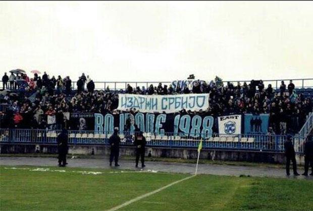 Pristalice Sutjeske popularne "Vojvode" su na tribinama na meču 31. kola crnogorskog šampionata razvili transparent na kojem je pisalo: Izdrži, Srbijo!