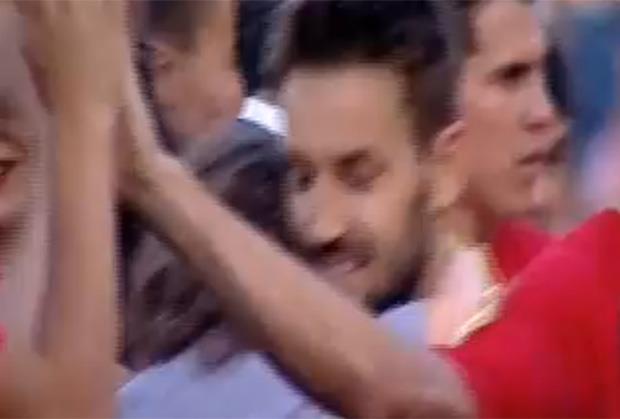 Dok su navijači i igrači pevali na terenu Ninković, koji još nije odlučio da li će i narednog leta biti na Marakani je brisao lice i šetao sa devojčicom, koja je bila pomalo zbunjena pa joj je popularni Nine sve vreme nešto govorio.