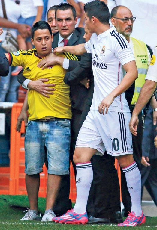 Pored pristalica „kraljevskog kluba“, na tribinama je bilo mnogo Kolumbijaca u dresovima nacionalnog tima. Jedan od navijača uleteo je na teren i pokušao da zagrli svog idola, a obezbeđenje je reagovalo grubo i munjevito. Ipak, Hames je uspeo da ga zaštiti i na kraju da mu pokloni loptu.