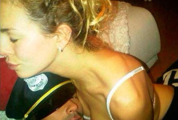 Na slikama se vidi goli Laveci sa policijskom kapom na glavi u zagrljaju svoje devojke. Na jednoj od slika Laveci je prislonio glavu na grdu Janine, a na drugoj fudbaler je među nogama svoje devojke.