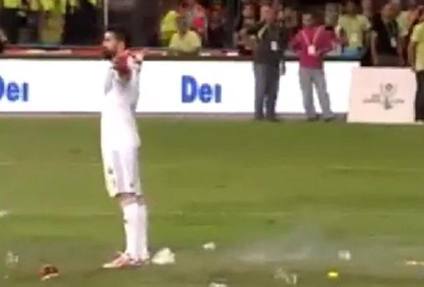 Navijači Galatasaraja su u jednom trenutku gađali kamenjem i flašama golmana Fenerbahčea Volkana Demirela. Sudija je odlučio da prekine meč, koji je nastavljen kada su se navijači smirili
