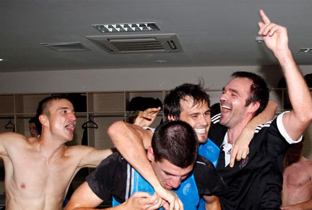 (FOTO) VELIKA RADOST: Pogledajte slavlje u svlačionici Partizana zbog ulaska u Ligu Evrope
