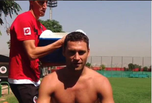 Srpski fudbaler je odlučio da se odazove izazovu supruge Jelene Karleše. Međutim, Tošić je odlučio da ga hladnom vodom polije saigrač iz kluba i reprezentacije Radosav Petrović.