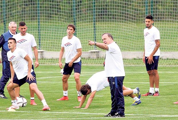 Tokom treninga sa igračima je komunicirao na engleskom jeziku, a najviše se oglašavao dok su, podeljeni u dve grupe, igrali uz jedan dozvoljeni dodir s loptom.