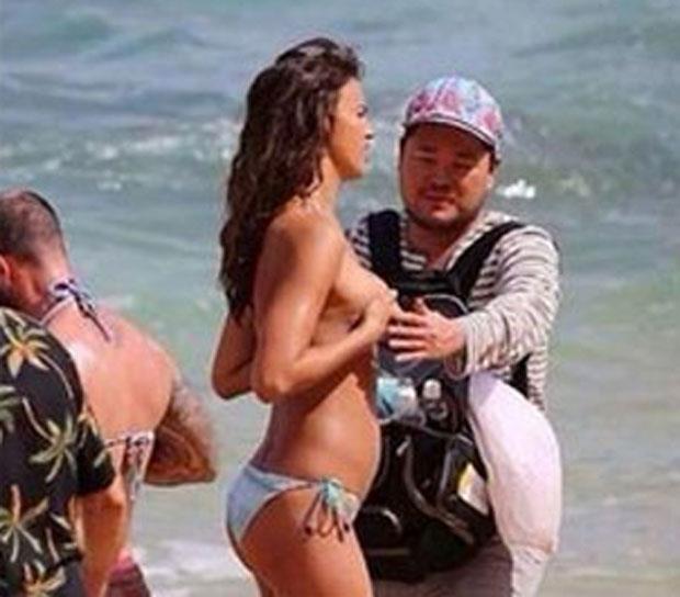 Na slikama koje su osvanule na društvenim mrežama vidi da se prelepa Ruskinja ništa ne može da odradi sama i da ima pomoćnika. On je bio zadužen da je polije uljem, da joj namesti donji veš, grudi...
