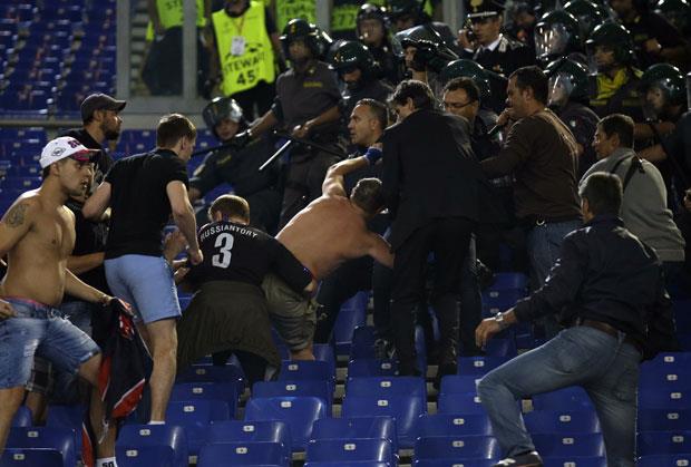 Dvojica navijača ruskog kluba povređena u tuči sa grupom pristalica Rome pre meča LŠ. Jedan ruski navijač zadobio je ubodne rane u predelu stomaka i ruke, dok je drugi udaren flašom u glavu, tako da su obojica prebačeni u bolnicu. Za sada nema detaljnih informacija o njihovom stanju, ali je sigurno da im zivot nije ugrožen.