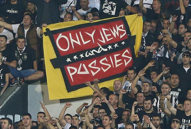 Umesto o igri Totenhema ili Partizana, engleskim izveštačima sa meča Lige Evrope odigranom u Humskoj najveću pažnju skrenuo je antisemitski transparent "Grobara".