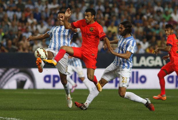 MALAGA - Fudbaler Barselone Pedro Rodrigez obrukao se na meču protiv Malage u petom kolu Primere.
