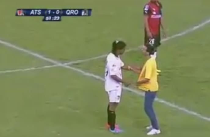 Naravno, momak je otrčao pravo do Ronaldinja i zagrlio ga, a "Dinjo" je ispao veliki čovek, pa se ljubazno potpisao na dres ovom momku, te ga lepo zamolio da napusti teren: