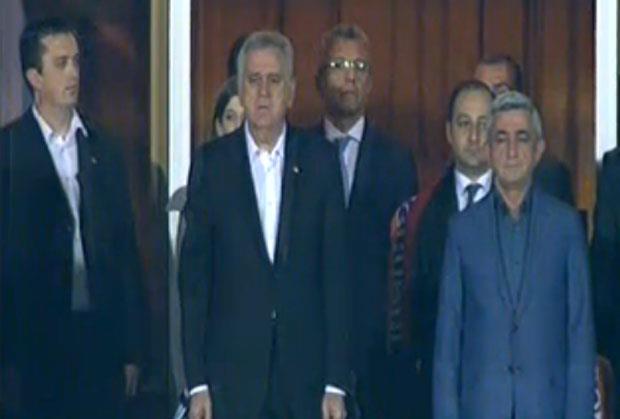 Tomislav Nikolić se nalazi u zvaničnoj poseti Jermeniji, a iskoristio je priliku da uživo sa tribina bodri naše fudbalere.