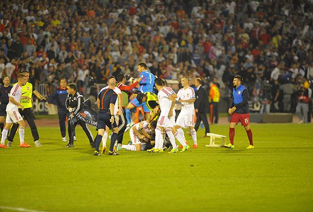 Celekupnu albansku delegaciju, zajedno sa funkcionerima, fudbalerima i stručnim štabom, štitilo je oko 300 policajaca u trenutku kada se napuštali Humsku.