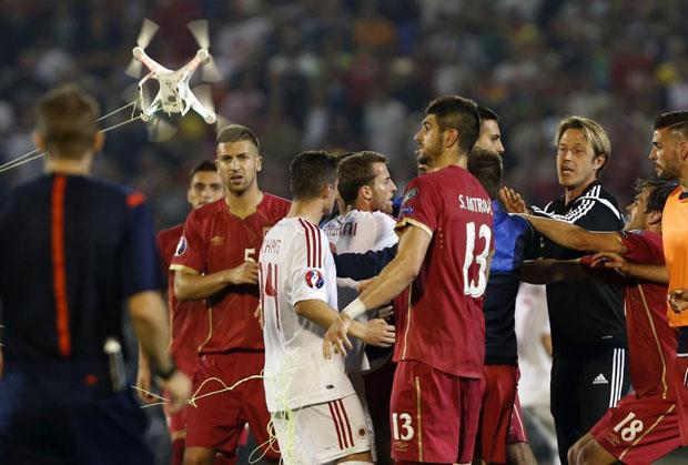 Utakmica kvalifikacija za Evropsko prvenstvo 2016. godine na stadionu Partizana između Srbije i Albanije prekinuta je utorak u 42. minutu, pošto je došlo do nereda, kada je iznad terena počeo da leti dron - mala letelica na daljinsko upravljanje.
