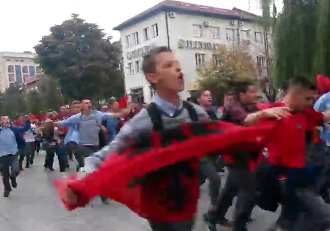 Oni su uzvikivali "Etnička Albanija" i "Dobro je biti Albanac". Najveći broj učenika je nosio zastave Albanije.