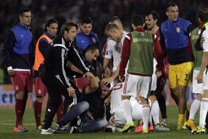Fudbalske reprezentacije Srbije i Albanije sastale su se sinoć u Beogradu u kvalifikacijama za Evropsko prvenstvo, ali je meč krajem prvom poluvremena prekinut zbog provokacije gostiju