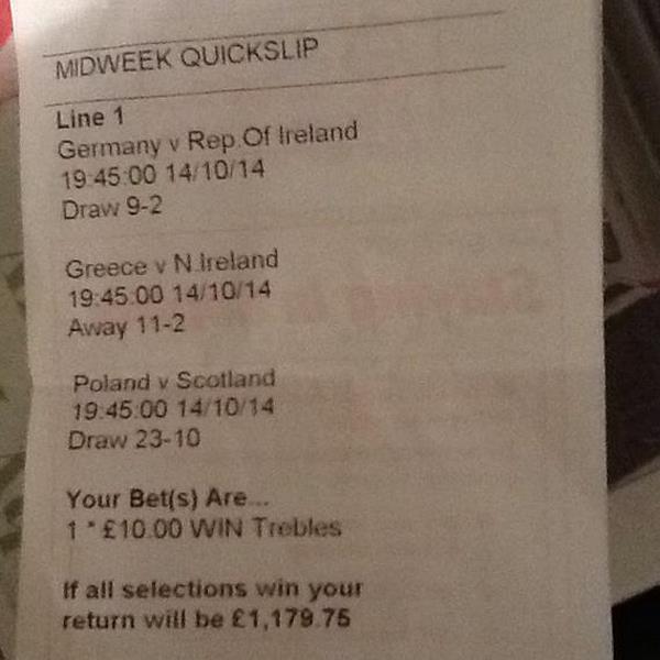 Kladioničar iz Velike Britanije, po imenu Nijal Mekaler, osvojio je preko 1000 funti uloživši samo jednu i to zahvaljujući patriotskom pogledu na fudbal.