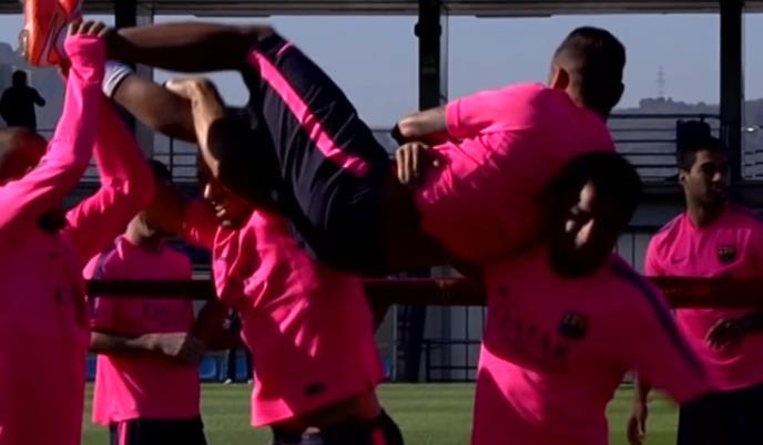 Kako bi se oslobodili tenzije, Barsini fudbaleri su imali nešto neobičniji trening. Oni su organizovali takmičenje u prenošenju saigrača preko neke vrste kanapa, i na kraju su se, očigledno, svi dobro zabavili bez obzira na ishod trke: