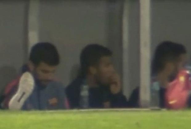 Kamere španske televizije uhvatile su Pikea kako se igra na mobilnom telefonu na klupi za rezerve i to bez namere da vidi šta se dešava na terenu