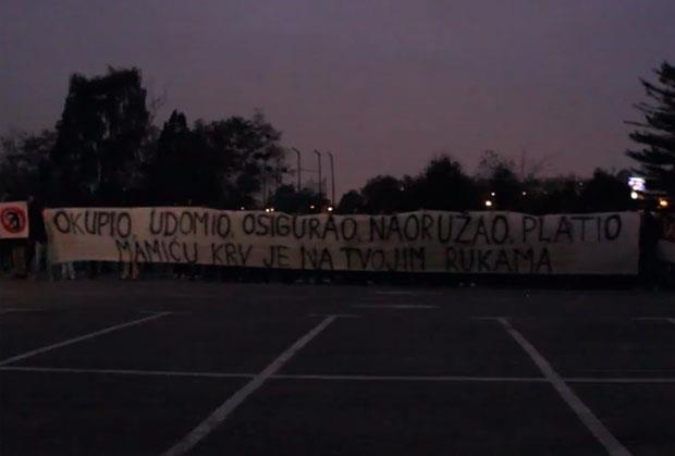 Oni su tom prilikom istakli veliki transparent koji je bio upućen Mamiću. Na njemu je pisalo: "Okupio, udomio, osigurao, naoružao, platio. Mamiću, krv je na tvojim rukama".