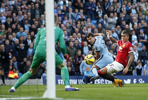 Siti je bolje ušao u utakmicu, a prvu veliku priliku domaći su imali u 21. minutu. Navas je sam izašao ispred De Hee, ali je golman Junajteda bio siguran. Samo minut kasnije nova šansa za domaće. De Hea je zaustavio odličan udarac Aguera. Gosti su od 39. minuta igrali sa fudbalerom manje, pošto je zbog dvažuta karton isključen Kris Smoling. Siti je u 43. minutu oštećen za pena, posle prekršaja Felainija na Aguerom. Sudija Majkl Oliver je pokazao da se meč nastavi, a Felaini je prošao bez kazne pošto je i pljunuo Aguera.