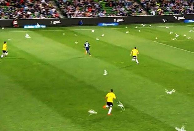 Melburn je imao napad u 68. minutu, a onda su teren preplavili galebova. I dok su svi očekivali da će sudija da prekine meč, dok ptice ne napuste stadion, desilo se suprotno