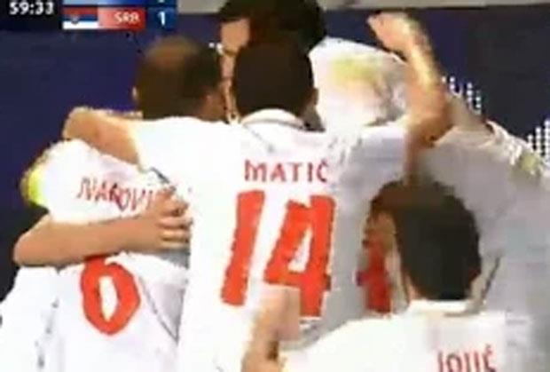 Zoran Tošić je izveo slobodan udarac iskosa sa desne strane sa oko 30 metara, a Petrović je sa desetak metara glavom matirao golmana Glikosa.