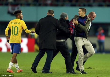 Fudbaler Barselone Nejmar upamtiće gostovanej reprezentacije Brazila u Austriji po pobedi, ali i bliskom susretu sa navijačem Katalonaca, koji je neopaženo utrčao u teren i želeo da dobije autogram na dresu tog kluba.