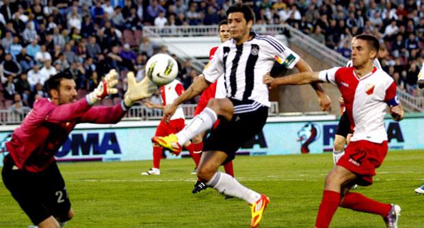 Slobodan Novaković je izveo korner sa leve strane, odbrana Partizana je odbila loptu koja je pala pred Škuletića koji je sa šest metara pogodio mrežu Vladimira Stojkovića. U prvom poluvremenu Partizan je najbliži izjednačenju bio u 32. kada je kapiten Saša Ilić pogodio stativu da bi potom pokušao Eduardo koji je izblokiran. Lopta je ponovo došla do Ilića, ali je on iz drugog pokušaja šutirao preko gola.