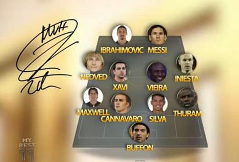 Ibrahimović je svakog igrača opisao jednog rečju. U idealnom timu švedskog napadača nalaze se Bufon, Kanavaro, Silva, Maksvel, Turam, Nedved, Ćavi, Viera, Inijesta, Mesi i Ibrahimović.