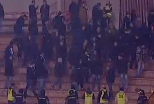 Navijači OFK Beograda su napustili stadion na meču sa Crvenom zvezdom, jer im je bilo zabranjeno da okače transparent na kojem se prozivaju crveno-beli