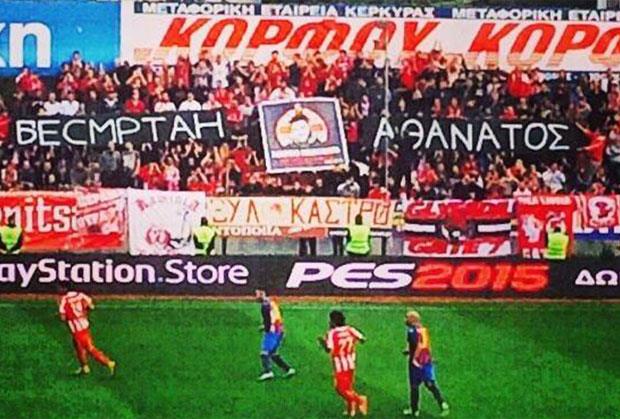 Navijači Olimpijakosa i Crvene zvezde su u bratskim odnosima, a pristalice ekipe iz Pireja su na utakmici na Krfu istakli transparent na kojem je na srpskom jeziku pisalo: Besmrtan. Olimpijakos je pobedio na kraju 4:0.