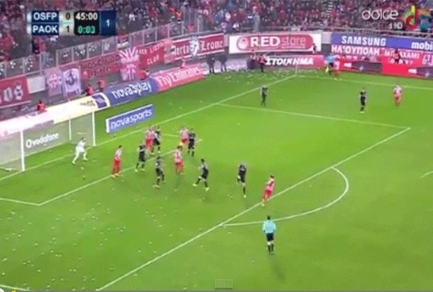 PIREJ - Fudbaler Olimpijakosa David Fuster na meču protiv PAOK-a u 11. kolu grčke Superlige postigao je jedan od najlepših golova u sezoni.