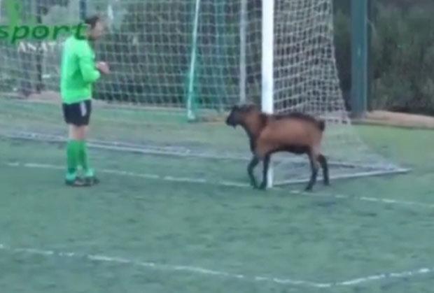 KRIT - Na jednoj niželigaškoj utakmici na Kritu jedan jarac koji je stajao pored gola tri puta je prekidao meč.