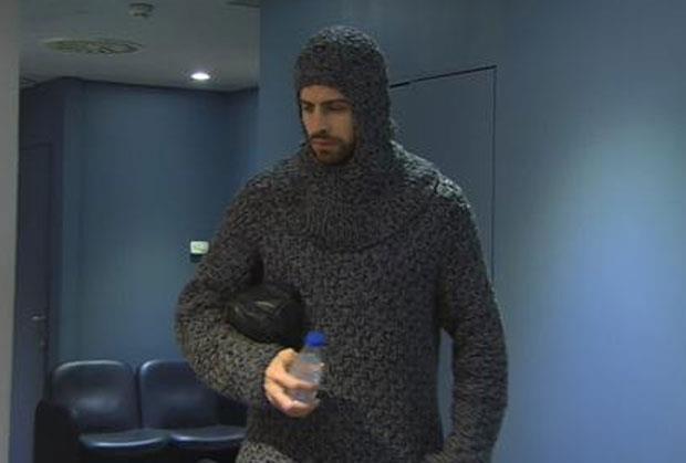 BARSELONA - Fudbaler Barselone Đerar Pike došao je u na stadion Nou Kamp uoči utakmice poslednjeg, 6. kola Lige šampiona protiv Pari Sen Žermena obučen kao vitez iz srednjeg veka.