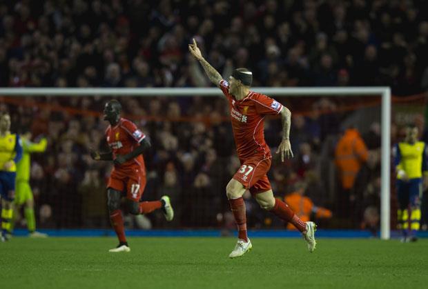 Liverpul je poveo u 45. minutu golom Kutinja, a u poslednjim trenucima prvog dela meča izjednačio je Debiši. Žiru je doneo vođstvo Arsenalu u 64. minutu, a Škrtel je 97. minutu doneo izjednačenje Liverpulu.