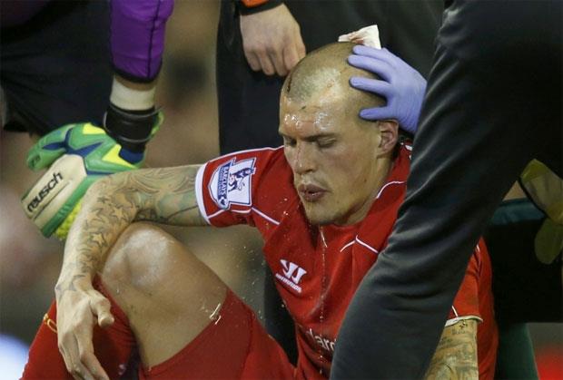 Francuski napadač je kramponima Slovaku rasekao glavu, a fudbaler Liverpula je nastavio meč sa zavojem. Škrtelu je pomoć ukazivana pet minuta.
