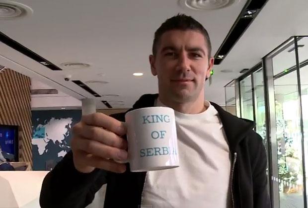 Fudbaler aktuelnog šampiona Engleske, Mančester Sitija Aleksandar Kolarov izljubio se tri puta sa Sitijevim Deda Mrazom. Kao što je u Srbiji običaj da se tri puta poljubi u obraz, Kolarov se tako izljubio i sa ostalim radnicima i iznenadio ih. Fudbaler je na poklon dobio šolju na kojoj je, pored imena i prezimena stajao i natpis „Kralj Srbije".