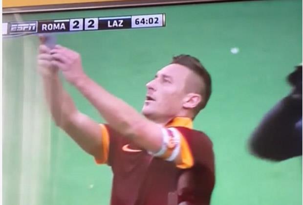 Posle drugog pogotka Toti je radost podelio sa najvernijim navijačima na južnoj tribini Olimpijskog stadiona u Rimu, a potom pozajmio telefon kako bi napravio selfi