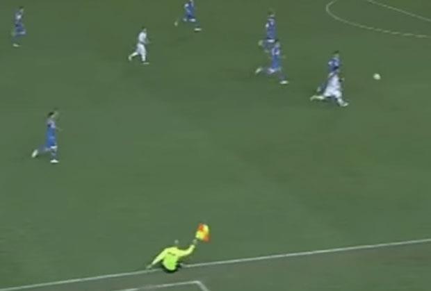 Pomoćni arbitar je pratio akciju ekipe Intera, ali se onda sapleo, pao i signalizirao glavnom sudiji da su gosti u ofsajdu