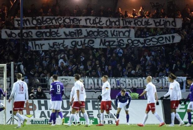 Navijači domaćeg tima razvili su i sliku na kojoj je vlasnik Red bula bio obučen u fašističku uniformu.