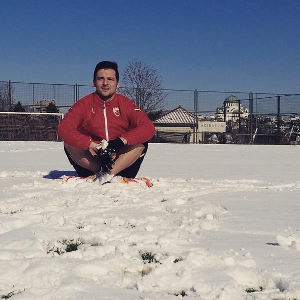"Pozdrav za moje saigrače. Neko na moru, neko "sneg do kolena", napisao je Despotović na Instagramu, uz fotografiju sa stadiona u Ljutice Bogdana.