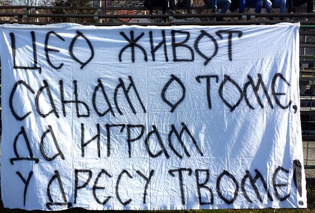 Najzanimljiviji je bio transparent postavljen na ogradu pored terena.
