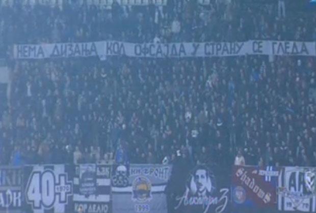 Navijači Partizana su ogorčeni suđenjem u nastavku sezone. Da podsetimo, na utakmici 17. kola između Partizana i niškog Radničkog (0:0) sudije su neopravdano poništile gol fudbalera crno-belih Petra Grbića. Grobare je potom iritirala činjenica da su Crvenoj zvezdi na meču protiv Vojvodine (3:0) priznatala dva gola koja su postignuta iz ofsajda.
