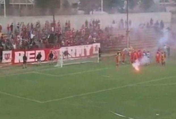 Nezadovoljni rezultatom, navijači Veleža utrčali su na teren u samoj završnici susreta i prekinuli meč, pa je policija bila primorana da interveniše