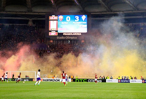 Navijači su napustili tribine Olimpika pre završetka prvog poluvremena, kada je već bilo jasno da Roma nema nikakve šanse da prođe dalje jer je već posle 22 minuta gubila sa 0:3.