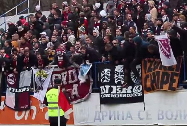 Navijač Drine iz Zvornika koji ima nadimak Pauk tokom utakmice 20. kola Premijer lige BiH sa ekipom Sarajeva prišao je tribini sa gostujućim navijačima i pocepao im zastavu sa ljiljanima.