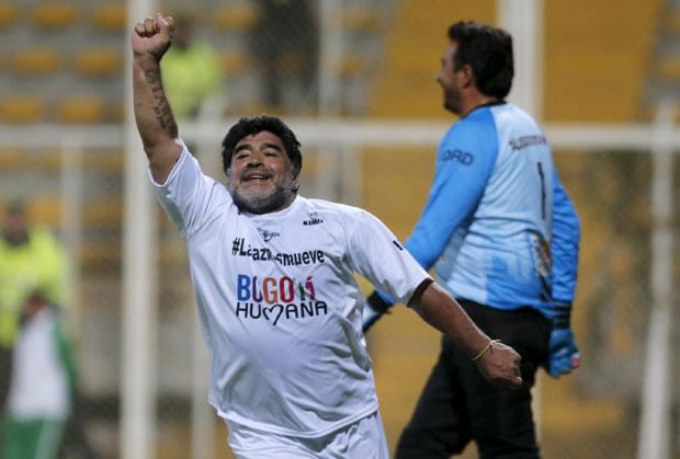 Maradona je na meču na kojem su igrali fudbalski veterani postigao pobedosnosni sa penala za svoju ekipu. Argentinac je nosio dres sa brojem 10, a pozvao je na kraj sukoba u Kolumbiji. Ova utakmica je imala mirovnu misiju, jer su svi njeni akteri pozvali na okončanje sukoba u ovoj južnoameričkoj zemlji.
