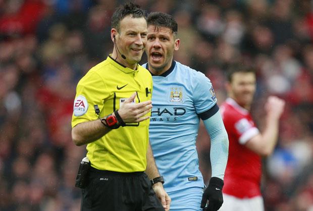 MANČESTER - Fudbaler Mančester sitija Martin Demikelis želeo je na zanimljiv način na prevari sudiju Marka Klatenburga na derbi meču Premijer lige protiv Mančester junajteda.