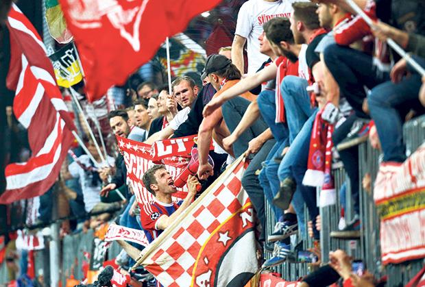 Prvi je reč imao Tomas Miler, ofanzivni vezista Bavaraca. Posle poslednjeg zvižduka sudije otrčao je do tribine s najvatrenijim navijačima, popeo se na šipku, uzeo im megafon i na opšte oduševljenje počeo da peva navijačke pesme.